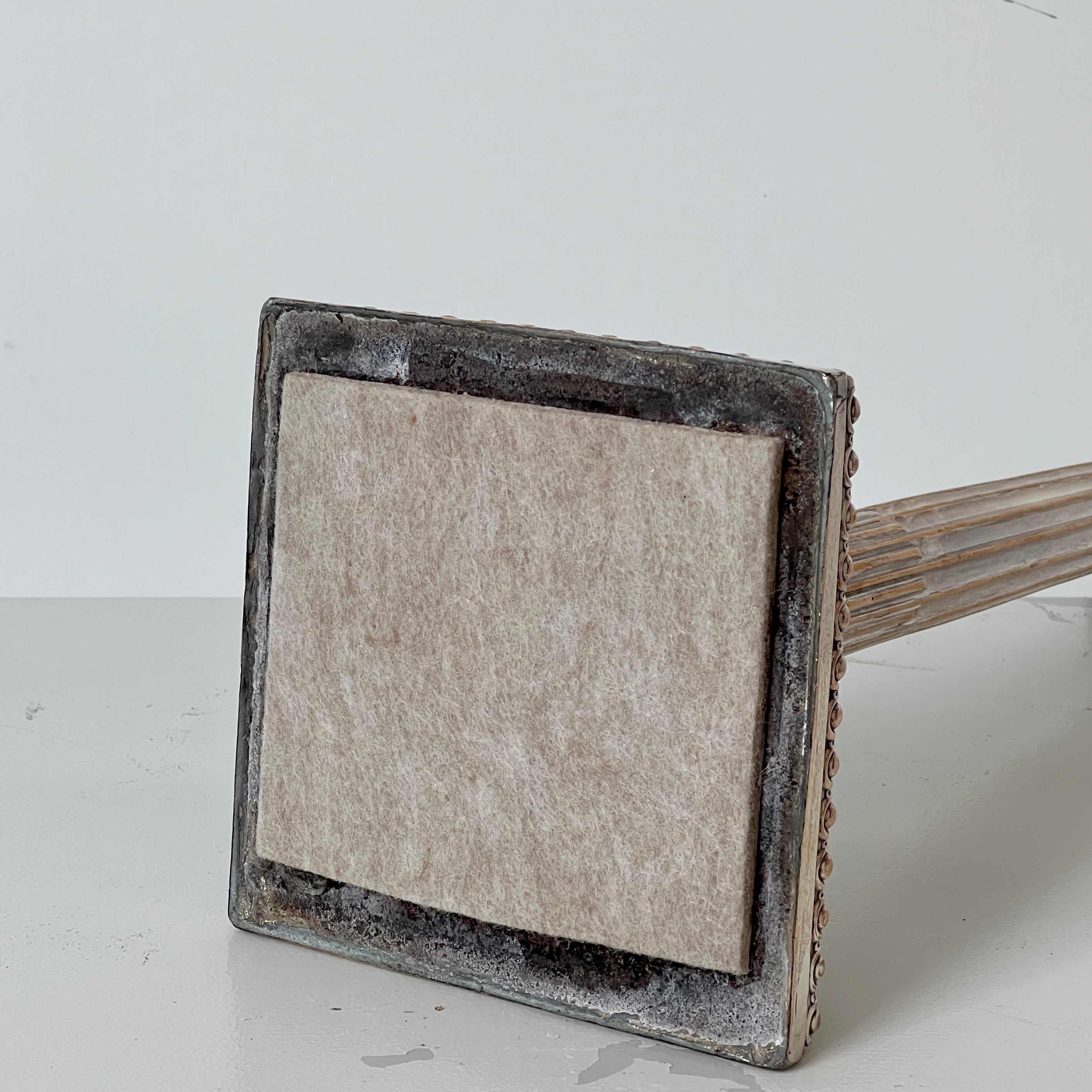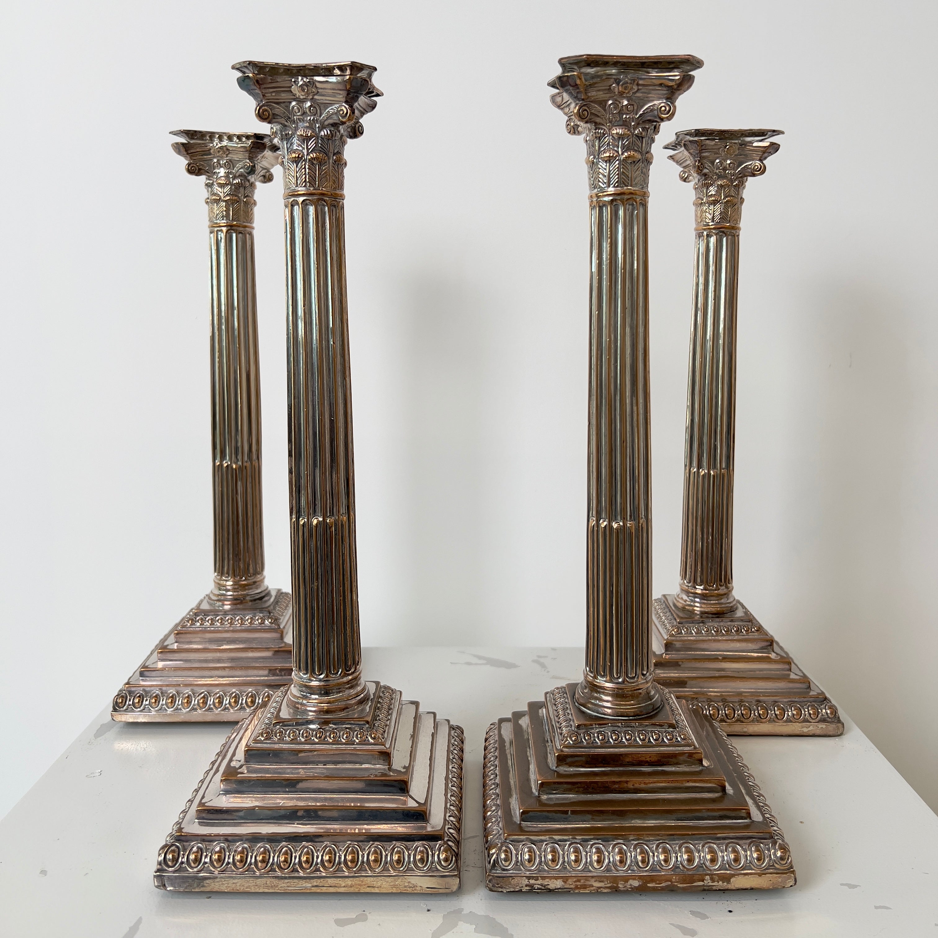 maker's marked rubbed off two candlesticks, loss of felt bottom on two candlesticks, condition and surface wear consistent with age